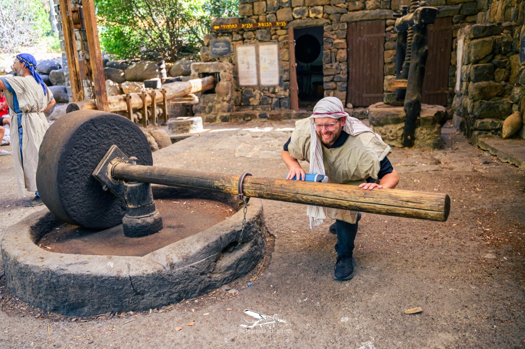 After Rabbi Naiman’s morning book club, we made our way to The Ancient city of Katzrin is a fun little activity where you get to dress up as ancient people and explore. They had some cool animals including a wild peacock just running around. there are some cool games to play and you get to make your own Pita, from scratch.